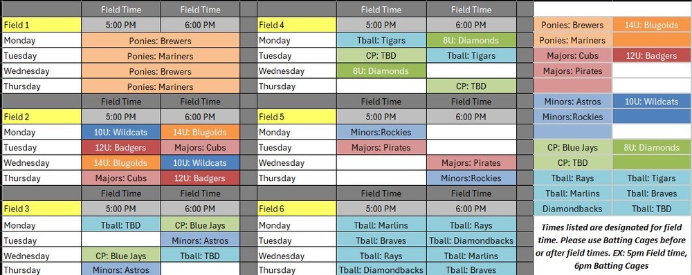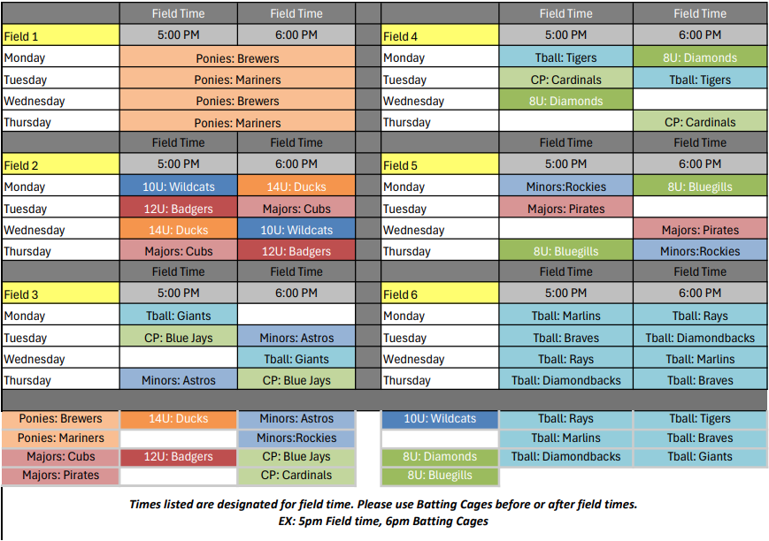 Please see below for the spring recreational baseball and softball practices. We look forward to seeing you all soon!